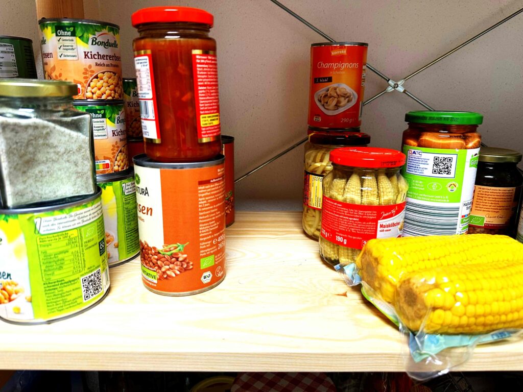 Was hat sich geändert? Ich habe aus meinem Vorratsregal einen kleinen Supermarkt gemacht. Mein Mini-Supermarkt funktioniert fast genauso wie sein großer Bruder. Alle Artikel haben im Vorratsregal einen festen Platz bekommen. Die Dosentomaten stehen neben dem Ketchup, darüber die Nudeln und so weiter. Dann hat jede Stelle ein Warenschild erhalten. Auf dem Schild steht, welcher Artikel dort seinen Platz hat und wie viele Stück davon da sein sollen. „Pesto (3)“ bedeutet, dass 3 Gläser Pesto an diesem Platz im Regal stehen sollten. Wenn ich dort nicht 3 Gläser finde, kaufe ich die fehlende Menge nach.